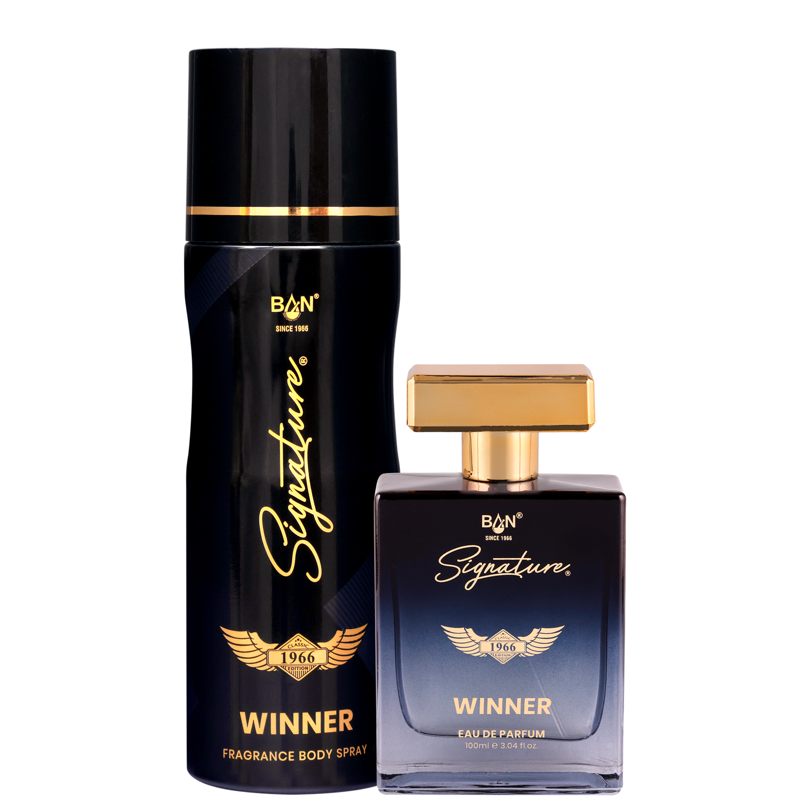 Experience the bold, luxurious energy of WINNER with this exclusive Signature Duo. This premium set includes our long-lasting 100ml Women's Eau De Parfum and the beautifully refreshing 150ml Deodorant Body Spray, masterfully designed to be worn together.