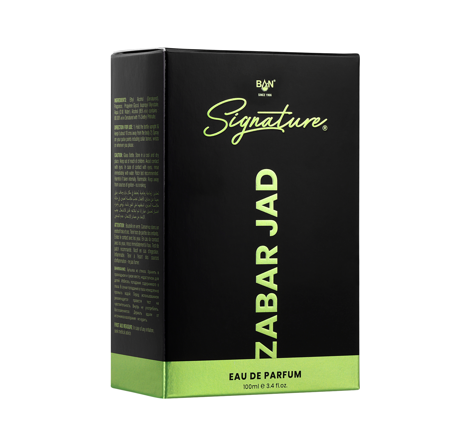 • β€’ The Ultimate Zabar Jad Duo: Includes one Premium 100ml Unisex Eau De Parfum and one 150ml Deodorant Body Spray.